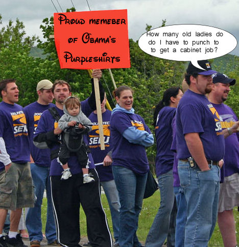 All I know is that old Melnick doesn’t want a State Senator who is a puppet for a union led by a man like Andy Stern, who talks the talk, then sends his minions out to walk the walk. The same SEIU that supports forced-unionization and card check…who go around roughing people up here….roughing people up there…are too stupid to hide the eggs they eventually throw at those they wish to intimidate…and just can’t find a new cheer or someone with an IQ above 53 to put in front of a camera.